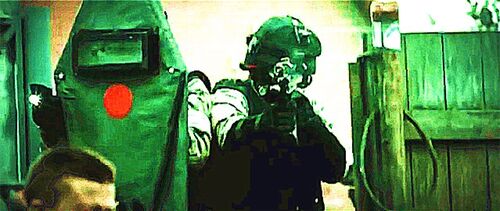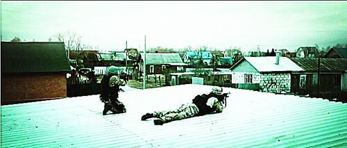 在FSB特种部队突入房间前,已经悄悄隐蔽在栅栏的后面。这满足出其不意的原则,因为恐怖分子看不到进攻方向。
