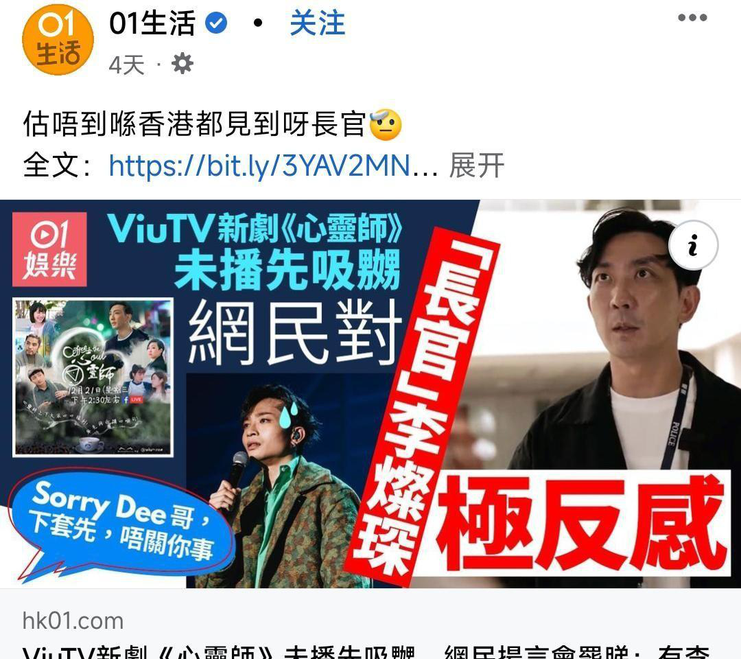 在香港,被抵制的一般是TVB剧,ViuTV大部分被评为神剧,受到娱乐媒体、剧评者和网友的大力支持。 多年来,只有购买的《战毒》是例外,但现在自制剧《心灵师》也是个问题。 只能说下面是家长欢跃娱乐媒体《香港01》对李灿森的报道截图:
