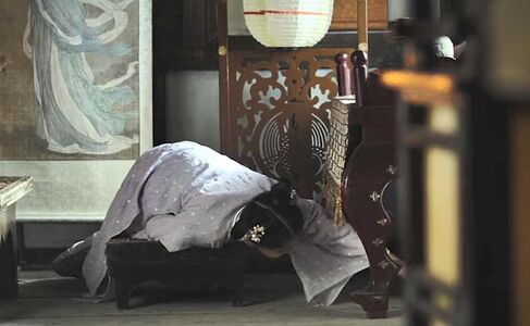 这时死者的妻子赶紧跑过去拦住女儿,当着狄仁杰的面把玉壶藏到身后。