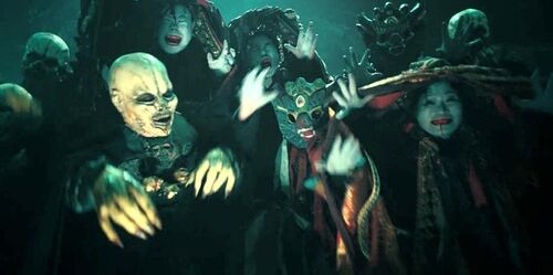 但电影中的这群牛鬼神蛇都只是穿着奇装异服的人,没有特效、只有一点妆容,劣质感满满。