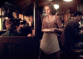 查找《开罗的紫玫瑰》的影评时,看到有人用科勒律之花来描述电影:“如果有人梦中曾去过天堂,并且得到一枝花作为曾到过天堂的见证。而当他醒来时,发现这枝花就在他的手中……那么,将会是什么情景?”然而在电影的世界,当头顶的灯光亮起,你恋恋不舍的从红天鹅绒的椅子上站起,手中却永远留不下那一枝柯勒律之花。银幕隔开了两个没有交集的世界。不过这一次,坐在“珠宝”电影院里的Cecilia,得到了远比一朵开罗紫玫瑰有力得多的、穿越了虚假与真实的证据——一个活生生的人从银幕后走出来,带着她走了一段无比美好却一去不返的旅程。提起《开罗的紫玫瑰》,大家都对Tom跨出银幕的开创性举措津津乐道。这虽非首创,但由于作品自身魅力,也还是引来了不少戏仿与致敬。而且其中在我看来特别值得一提的,是《逃离“自由”电影院》。这部电影的风格和主题都和《开罗的紫玫瑰》截然不同。它讨论意识形态、自由以及政治,带有沉重的波兰味道。然而导演还是直截了当的表达了对伍迪•艾伦的崇拜:他让放映员将《日出》和《开罗的紫玫瑰》叠放,让Tom从银幕中跨出,却并非到Cecilia身边,而是和《日出》里的角色们展开了一场权利、权力、自由、思想解放的讨论。这样充满了想象的伟大创意,应该是最能令伍迪•艾伦这样的怪才大师高兴的致敬方式吧。伍迪•艾伦是一个让人无法定性的人。他拍思辨电影,也拍笑闹的喜剧,他的故事里总是充满了辛辣尖酸的讽刺,可是总在大气球填不满的小角落里留下了一丝丝开怀的幻想,温暖的柔情。有人讲故事的时候,拼命地说明自己的意思;有的人讲故事,自然就能让人明白自己的意思;还有的人讲的故事,让每个人都觉得自己懂得了不同的东西,却又不敢说懂了,忍不住想揪住讲述人的脖领子狠狠的晃一晃。伍迪•艾伦就属于最后这种人。这个美国的犹太人艺术大师身上拥有一种深藏在调皮、刻薄、玩世不恭后面的悲剧气质,他的作品让人在大笑之后,悄悄转脸默默叹息。Cecilia是一个生活在大萧条时代的可怜美国女人。她是个无聊的女招待——那个年代有个饭碗就是幸运了,老板对她毫无同情。丈夫对她则是打一下揉三揉,每一句话都潦草而漠不关心。甚至他的情人都是个肥胖的毫无吸引力的女人,就连他们的偷情都不带有“偷”的兴奋。当被Cecilia撞破,丈夫的解释荒谬得不带丝毫的逻辑。看得出,丈夫对她就和对这个大萧条一样漠然,无论说话还是走路都带着一种懒洋洋的腔调。只有电影的黑白能让Cecilia感到兴奋,感到心中的激情。这个苍白纤细的女人在盯着银幕时,眼睛和脸庞都是发亮的——就连她买电影票和买爆米花的时候,她的身心都具有这样的光彩。镜头总是从微微仰视的角度拍Cecilia微微仰视的被银幕的光打亮的脸,她的眼睛随着银幕上的活动影响而闪闪发光。只有电影里面漂亮的人,机智的语句,奢华的生活,幸福的情节和结局才能让这些挣扎在大萧条中的人们暂时忘记现实的苦涩。Cecilia说到电影的事情的时候声调总是上扬的,看得出,正是因为有这样一个她可以钟情的事物,才能让她还对生活抱有美好的情感。大萧条时代正是电影有声化的时期,有声片这个新玩艺儿和大萧条一起在1929年来到美国,观众——也包括了Cecilia,都蜂拥到电影院观看有声电影。经济衰退,有声片却令电影成本提高,小的影片公司和影院陆续倒闭,大影业公司也要依赖财团才能生存。然而美国影业用“便士影院”和“B级片”得以求生,并且为千千万万个Cecilia在整个30年代提供了逃避和解脱。当一个人只有一块面包时,命运往往就要连这一口粮食也要抢去。丈夫的背叛和虐待升级,老板炒了她的鱿鱼。这种时候,恐怕电影也做不了她的救命稻草了。但是她能做的还是只有到电影院去,看着《开罗的紫玫瑰》发呆。直到Tom从银幕另一端好奇地来到她身边。这个英俊可爱的年轻人对一切都充满了兴趣——本来,这就是一个新奇的世界,再者,他的角色就是一个探险者嘛。可以说,当这个角色被演活,在伍迪•艾伦的世界里,他就应该离开银幕。因为他是探险家,他富有更强的好奇心,更勇敢——“这些性格都已经写在剧本上了”。当他待在银幕上的时候,大家都只是单调的描述着上流社会的生活,说着浪漫“高级”却毫无意义的傻话。可是当他离开银幕,银幕内外的言语都妙趣横生起来,伍迪•艾伦甚至开始控制不了自己的野心,纵容他们讨论起人类、哲学、宗教、终极意义之类的事情来。Tom和Cecilia开始了浪漫非凡却又奇特得令人哭笑不得的约会。他对现实世界的一切都毫无概念,充满了新奇的好感。这个令Cecilia厌烦,“对每一个人都分外艰难”的世界,对于这个新生的探险家是一个乐园。他的无邪、善良、勇敢,和一切一切已经写入他性格的优秀品质,为他赢得了Cecilia的爱情,赢得了一群饱经风霜阅尽冷暖的风尘女子的好感,也赢得了观众的喜爱。电影院和制作方都乱作一团,而银幕另一端突然打断了的故事里的人们,也越来越没有耐心,开始发出各种各样的呼喊,其中的共产主义分子腔调令制作方和影院老板,甚至他们自己都大为恐慌和不满。Gel•Sheperd也游荡在这个“什么事都可能发生的”新泽西,寻找这个给他惹了大麻烦的角色,于是就顺理成章地碰到了Cecilia。有趣的是,他居然也爱上了这个苍白纤细的女孩子。他和Tom