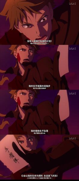 贤治:“大家,这是「第十年的果树园」。我还在村里的时候,有一次,大家花费十年才建起的果树园在一夜的暴风雨中全倒了,要知道我们还一次都没收获过呢。你们猜后来怎么样了?大家先是吓了一跳,然后微笑着重新栽下了树苗,为了重新开始一个新的十年。暴风雨把侦探社刮了个天翻地覆,但是没关系,毕竟招致灾难的暴风雨和带来恩惠的雨水,说到底都一样是雨啊。让我们跨越暴风雨,活下去吧。毕竟在这块名为地球的旋转岩石上,我们都无法放弃生存啊。”好帅。
