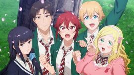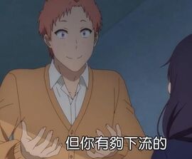 其次是,这个片段任谁都能看出黄毛是在扭曲别人的关系,我先从第一层人设来说,黄毛是上了高中才和男女主有交集的,换句话说,男女主,黑发-群堂,到后面的那对金发傻情侣,都和黄毛不是什么好友关系,黄毛就是一个路杂。