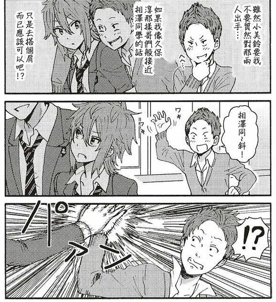 漫画前铺垫了两者之间的关系后,是表现在男主下意识的不悦进而推了群堂,并且他的不悦在漫画里是明确建立在:1. 小时候被群堂坑过;2. 群堂经常毒舌;3. 男主推群堂是下意识的反应;