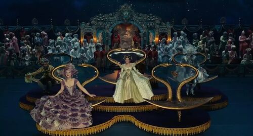 而到了胡桃夹子的王国里,导演就把王国的时代进行了一种架空化,从18世纪洛可可时期到19世纪末所有的都出现了一遍