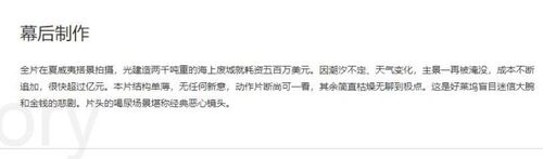 我之前其实就聊过这个片子,就是说,不明白当年为什么那么多人说是烂片,而且是主流媒体定义为烂片,比如现在某大型网站的评分是7.3,但看看它的幕后栏怎么说的: