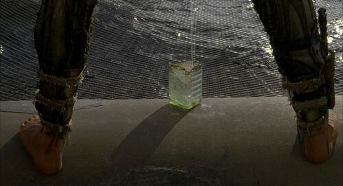 然后就是经典的喝尿镜头。海行者撒了泡尿,用一个简单的装置,过滤了一下就直接喝掉了。这个镜头被评为第一大恶心镜头,现在再来看这个镜头设计,简直是神来之笔。一个镜头就能让人明白很多。