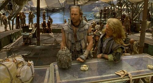 只不过《未来水世界》没有分析解释灾难形成的原因,而是直接表现了灾难后时代,让观众自己去体验末世的悲凉。