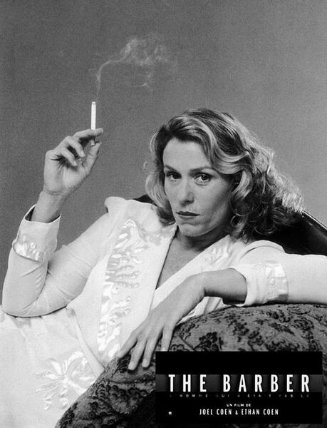 (我这不是教科书,就是我一感悟。若不喜绕行,别随地大小便,那不文明!自己不写,却要到处撒泼,那不该是值得骄傲的技痒。如果实在憋不住,非要排泄,脱了马甲再来。) 很多经典的故事之所以精彩,人物之所以深刻,恰如雨果笔端慧言,它们拥有“复杂得像海一样的性格”,选用这样的故事主人公,他们幽静而多变,危险却迷人,深沉里蓄积着咆哮的力量,湍瀑中隐露出微澜的怡然,不想其惹人注目都很难。《弹簧刀》里的比利.鲍伯.松顿是这样一个人,杀手雷昂是这样一个人,剧院魅影杰拉德.巴特勒是这样一个人,总之类似这样的戏剧人物多得数不清。 而在科恩兄弟的镜头里,从不受冷落的明星角色,恐怕也是这样的人物了。《缺席的人》是毋庸置疑的代表,也是科恩兄弟作品中让我异常喜欢的一部好电影。整部剧用精雕细琢的黑白色调,柔光中流泻妖娆的魅影,显露出了复古的、追忆的电影魔法魅力。黑白画面里一次曝光的明暗变化,在记录、叙述故事的过程中雕刻着纪实与戏剧的反差,又在沉淀着记忆与回想的颜色。另外,电影类型而言,无论于形于核,对色、光、谱、影呈现的效果,或以一种悲情的方式袒露社会阴暗面的主题概念,是缅怀上世纪传统黑色电影的追访之作。 刻画的旁白亦不拘泥于某种古板陈旧的启幕效果,衔接上电影尾部,艾德狱中书写传记的“倒叙”方式,整部剧借口述,娓娓道来的各种精彩,很自然地被圈进了画外音勾勒的框架内,使这场错位盘绕的“环状”凶杀事件益发交融无隙。 除此,科恩兄弟又特别擅长用镜头构建可纵深扩张的叙事画面,往往通过一种不易察觉的角度,摄入恐怖或犯罪的气息,制造猝不及防的戏剧冲突,从而营造出某种耐人寻味的意境。这似乎成了他们必选用的烹饪作料,对我而言,这一点也成为体验科恩式电影的乐趣之一,但他们从不滥用,所以不致廉价做作,便更为人称道了。 比如《血迷宫》里有段戏,讲的是艾比抛弃老公马迪,住到情夫雷伊家里,次日清晨,艾比在客厅被马迪伏击的过程。当时科恩兄弟把镜头对准马迪的忠犬时,整个画面爆发了意想不到的能量,相当不俗。《冰血暴》也举一例,谢利的岳父被矮个子古怪男枪杀,之后谢利赶到现场查看,当时斜线分割的镜头对准谢利的车身及不远处躺在地上的人,后备箱打开的刹那,画面显得智慧极了。 《缺席的人》中也有类似的,就在开场不久,艾德夫妇宴请戴夫夫妇那段。镜头架在艾德身后,随艾德的目光向前方灯火通明的房屋望去,艾德讲述妻子与老戴夫一起洗碗玩暧昧。突然,戴夫出现在艾德身旁,出场的入口是画面外,这种镜头语言很神奇,巧妙地营造了画面的生动感,还有一种不安的感觉。另外,镜头向摄入目标慢慢推近,或使运动的物体在静镜头中渐近,这些也都在科恩兄弟的画面中作为贴标,在别样的意境中显露出不凡。 再说电影《缺席的人》的剧情,其实并不复杂,不过是危机婚姻与倦怠人生,引发的一场生活革命,革命的结果是,没有了人生,没有了未来,大家天堂见,或者是地狱再斗。显然,这一次科恩兄弟又玩起了“非正常死亡”的游戏,依旧延用他们一贯热衷的题材,跑不出金钱、婚姻及怀才不遇的人生话题,像《血迷宫》《冰血暴》《巴顿芬克》等等,只不过多了一种哲学角度的因果轮回的思考,还表露出了对人性“欲望”的探索。而且,这些电影在划分地域与环境的过程中亦集中而现实,有意放大背景,拟出真实可信的“报道”之韵味。尤其突显于组建人物与事件的过程中,剧情的推进,时刻遵循着人要打破环境桎梏,人被欲望驱使裹挟,人向往高处且要出人头地的心路轨迹,这是物欲横流之世,你我皆无法摆脱的现实。 故事从一个叫艾德的中年理发师开启,他兴致索然地自我介绍,听起来他这日子真没法过了。有些神经兮兮的小舅子弗兰克自以为是,话唠,整天折磨他的耳朵;在服饰店工作的老婆多丽丝勾搭上了店老板戴夫,他却看在眼里口难开;他自己呢?沉默寡言,满腔郁闷,机械生活,情感麻木,作为入赘的女婿做了岳父大人的第二接班人,而在他心底里,对理发师这种人生选择却毫无热情与渴望。 说来在科恩兄弟的电影里,每部剧里不论主角还是配角,必有话唠之辈,滔滔不绝像一把无休无止的机关枪,除此,科恩兄弟的电影又在有心抑或无意中放大了嘴巴的功能,且不谈大段大段具有哲思韵味的旁白画外音,就近景中一张张被聚焦的唇齿而言,那些用语言透露出扭曲、夸张、伶俐、狞笑的面肌,无不在电影中形成一种特别的叙事语言。当然,与之对应的便是沉默,正像艾德所说的那样,他不大说话,只理发。如此,以景、及人,一静一动,科恩凭心理透视的锤,场景调度的斧,无限开拓边缘地带。 再回来说艾德这个角色,反正,他就是一条在死水里挣扎的鱼,需要滋养生命的新鲜氧气,于是,决定铤而走险背水一战。结果,这世界如此小的调侃,果真在艾德的生活里再现了。一位找到商机却没钱投资做干洗店生意的胖老板走进了艾德的理发店,一切冥冥中注定,两个人从此被无形的索命锁绑在了一起。 然而,悲剧回溯的源头却是早已发生了的“勒索”事件,艾德不知道而已。胖老板曾经看到过服饰店老板戴夫与多丽丝偷情,他又了解戴夫的发迹史,全部仰仗他老婆家族的财势与提携,这些顺理成章地引出了敲一笔钱的原始犯罪事实。不过,发给戴夫的几次匿名信,未收到回复,胖老板大概