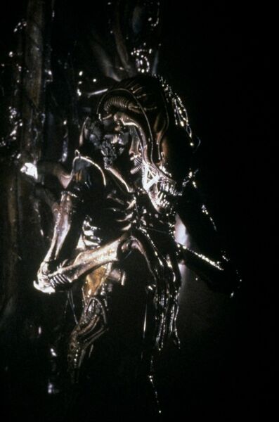 到了异形2有强烈的金属感并且身上带了很多条纹,也是为了适应异形2中的异形隐藏在巢穴不被发现。