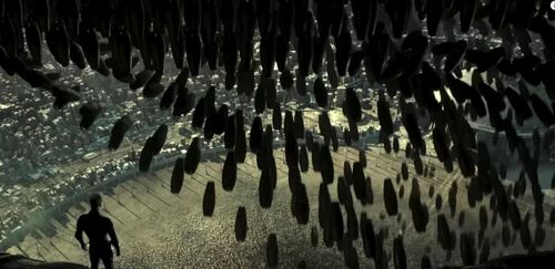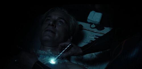 到了影片结尾部分。大卫成功骗过了丹妮,吐出自己珍藏的两颗袖珍抱脸虫。背景音乐是瓦格纳的作品《莱茵的黄金》第2幕中的一段:诸神进入瓦哈拉。