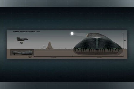 接着我们跟随人类的视角来到LV-223,他们进入到达的地方其实有两个建筑,建筑下面是飞船。如图。
