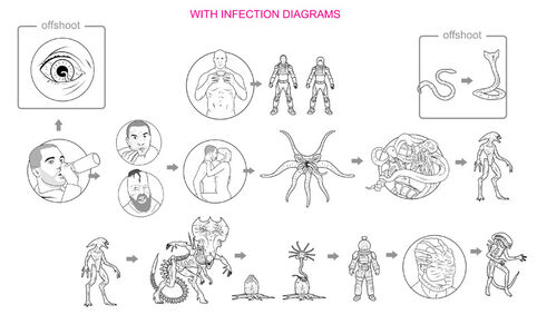 在异形系列里面,异形卵是由异形女王所产。但这就产生了鸡生蛋蛋生鸡的哲学问题。在《契约》中,影片还是没有提到第一颗异形卵的真正来源。