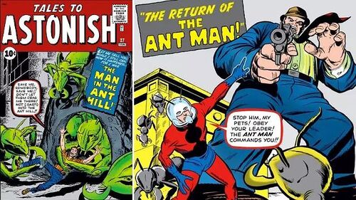 惊奇故事当反派达伦·克罗斯向投资人发表演讲时,他提到了蚁人在苏美冷战时期的传说,并形容其为“tales to astonish”(令人吃惊的传说)。初代蚁人汉克·皮姆在1962年的漫画《惊奇故事》(Tales to Astonish)第27期“The Man in the Ant Hill”中首次登场。漫画作者斯坦·李曾说过,因为那一期销量太好,所以他决定让皮姆成为超级英雄。于是,汉克·皮姆在第35期“Return of Ant-Man”中回归。