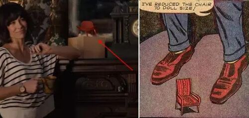 红色小椅子在汉克·皮姆的屋子里,我们可以看到一把红色的小椅子。在漫画中,他曾使用皮姆粒子缩小过一把红色椅子。