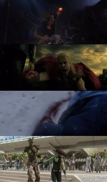 断手梗漫威第二阶段的每部影片都有断手梗,这是向《星球大战》中天行者·卢克的断手情节致敬。《钢铁侠3》:基里安博士Aldrich Killian因攻击钢铁侠而被砍手。《雷神2:黑暗世界》:雷神索尔在幻象中被弟弟洛基背叛而惨遭断手。《美国队长2:冬日战士》:巴基因为掉落山谷而断臂,后来被装上了机械手臂。《银河护卫队》:树人格鲁特在卡魔拉的打斗中被切断双臂,不过很快又重生了。《复仇者联盟2:奥创纪元》:一处为Ulysses Klaw被奥创砍手,另一处为反浩克装甲Veronica在打浩克时断了一只手臂。