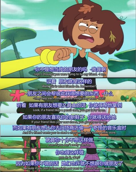 今天吃晚饭的时候看了《奇幻沼泽》第一季第一集,第一集讲了少女小安流落蛙人国,与小蛙盆盆成为好朋友的经历。第一集只简单交代小安流落蛙人国的起因——她被两个朋友怂恿着去偷一个奇怪盒子(尽管她自己并不愿意)盒子打开的一刹那,扑面而来的奇异的光把小安带到了蛙人国(根据第一集结尾的情节可知小安的那两个朋友很可能也被带到了蛙人国)。经过第一短暂的冒险,小安和盆盆成为了朋友。看完第一集后我的猜测:后面的故事可能会围绕小安和盆盆两人的友谊深入、二人各自的成长、二人对友谊的再认识等主题展开,这也将是故事的主线。