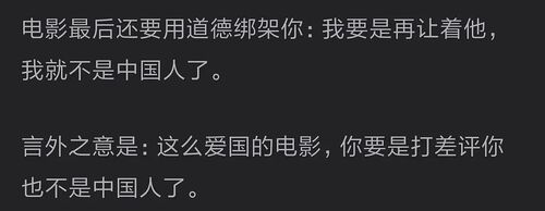 当时无论是作为中国人的身份,还是中华传统流传下来的武术,皆被美军肆无忌惮地挑衅、侮辱!在当时那个情形下,你选择退缩选择沉默,你或许还是中国人,或许只是个没有尊严的中国人,但我不太明白有何资格去指责一个为自己民族尊严抗争的中国人呢?这难道不是人之常情吗?而“我要是再让着他,我就不是中国人”这句话有针对除了他自己以外的任何人吗?到底是什么样的逻辑与类比能让你从这样一句话意淫出道德绑架,还能跳脱荧幕故事上升到现实得到所谓的“言外之意”?真是荒唐可笑,被害妄想。