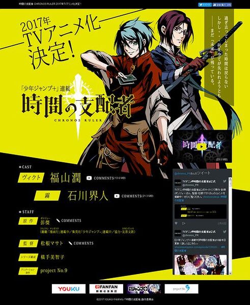 吞噬人们时间的恶魔……其名为“计”。操纵时间并与之对抗的时间支配者“Chronos Ruler”。 被计夺走了自己的“时间”的维克托,与搭档雾一起。为了夺回名为时间的“过去”而操纵时间,不断战斗…… 时间操作系潮流动作剧,开幕——!