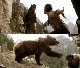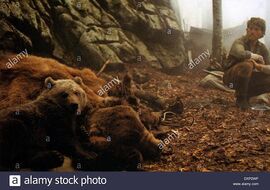 都说有两种演员最难把握,一是小孩,一是动物。这两种演员常常会不受控制,让导演最大费周章,最为头疼。我想这是因为他们不能完全明白别人的意思,无法顺畅的用语言进行沟通,尤其是后者,它们是简单的一类演员,很难表现出像人类一样的喜怒哀乐,所以更加难以掌控。但是这部电影的两个主要演员恰恰是一大一小两只熊,他们在电影中是两位本色出演的演员,将它们自己的世界和真实的生存状况毫无保留的奉献给我们,他们是片子中最优秀的两位演员。