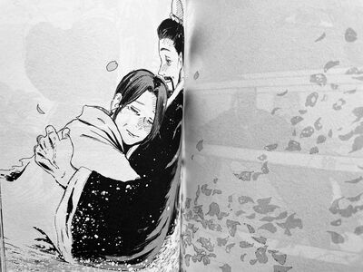 《地狱乐》漫画中的徐福与他的妻子同样的道理,从这个角度看《地狱乐》,画眉丸一众前往仙岛,也寓意着殖民和侵略。也就是说,统治者为了完成个人的征服欲,无视底层人民的生命,派他们去陌生的领地送死。无论是寻药,还是征战,对于底层人民来说都是死。