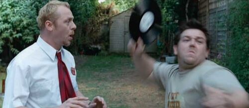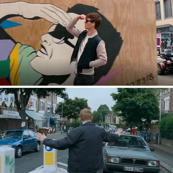 电影开场不久后“宝宝”去帮团伙成员买咖啡的长镜头,刚好致敬了导演埃德加·赖特自己的电影《僵尸肖恩》。在《僵尸肖恩》中,也有一个同样的开场长镜头,展示了西蒙·佩吉饰演的主角肖恩走街串巷去超市买饮料的行尸走肉画面。2 & 3、耳朵不好使,“面具”买错了