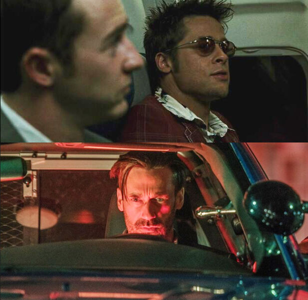 电影中,“宝宝”和养父晚上坐在沙发上看电视,换台时电视中出现了梅丽尔·斯特里普出演的《爱很复杂》、布拉德·皮特出演的《搏击俱乐部》,以及迪士尼的《怪物公司2》。并且,这些在电视里一闪而过的电影台词也都出现在了后面的剧情中。也就是说,“宝宝”在用电视中出现过的电影台词活学活用。比如:《怪物公司2》中“我们是一个团队的,没有什么比我们的友情更重要。”前半句成了“宝宝”后来与黛博拉准备逃亡求道哥帮忙遭拒绝时说的话。除此之外,《爱很复杂》中的那句“这些孩子长得真是太快了!”是“宝宝”带着道哥儿子在邮局打探情报、柜台工作人员问他孩子几岁时,“宝宝”回复的这句话。6、《搏击俱乐部》——不要让巴迪见“血”