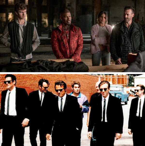 团伙中疯癫癫的搅屎棍“巴茨”由奥斯卡影帝、音乐人杰米·福克斯饰演。在2004年的《灵魂歌王》中,他以假乱真的表演完美还原了美国灵魂乐之父雷·查尔斯并一举称帝奥斯卡。作为一名出色的音乐人,他还多次获得格莱美奖提名。有意思的是,《baby driver》里杰米饰演的“巴茨”虽然一身嘻哈音乐人装扮,却假装不知道芭芭拉·史翠珊(Barbra Streisand)是谁——而这位同时拥有奥斯卡奖、托尼奖、格莱美奖、艾美奖、金球奖多个权威奖项的“得奖专业户”其实私下里和杰米是好朋友。18、抢劫前听《敲开天堂之门》太不吉利了……