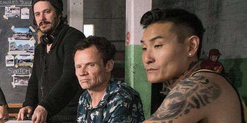 仔细观察你会发现团伙中的几位罪犯脖颈上的纹身和他们的角色特点总能形成有趣的对应关系。比如“雌雄大盗”巴迪和达琳分别纹的“her”和“his”,暗示着彼此难舍难分的热恋关系;比如“巴茨”脖子上真的纹了好几只“蝙蝠”(Bats);再比如韩裔演员兰尼·琼(Lanny Joon)饰演的“J.D”一开始纹了一个浮夸的“HATE”(仇恨)并配上了中文的“恨"字,为了扩大业务量,强行抹掉字母“E”改成了“HAT”(帽子),但实际上“J.D”(John Doe)在英语中是“无名氏”的意思,这个角色也很快就领了便当。