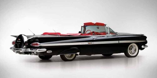 片尾的“撞车大战”,“宝宝”驾驶一辆上世纪80年代生产的二代K5 Blazer与巴迪的道奇Charger警车互殴,最终巴迪的车被顶下天井。32、1959款雪佛兰黑斑羚敞篷(Impala Convertible)