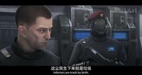 剧中虽然能见到多个纯种白人的角色,但纯正亚洲人却见不到几个,都被欧亚混血给直接替代,比如女指挥官镜南和那个小平头尘民是典型的亚洲混血人种面庞。白毛副手冉冰虽然是中国名字,但建模却是一个蓝眼睛的欧美白种女人,咋一看还以为是演星际穿越时期短发的安妮海瑟薇呢,说是中国人设定实在搞笑。