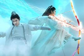 女主赖雨濛饰演的芸芷背后那一对翅膀惟妙惟肖,她的造型好像一个精灵。她的武器也比较优美,一个是长菱,一个是箭。尤其她射箭的动作,姿势优美。