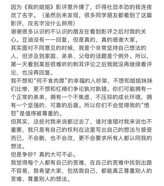 我觉得任何人都有选择自己想要生活的权利,这些权利不是“姐弟情”、“父女情”、“母女情”就足以绑架的。