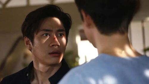到了两位男主的对戏,少不了高高低低的哭与笑,也少不了涌动的暧昧与公然的挑逗,那也是顺应泰剧风情,明暗都要发糖。Chan把被打的Tin救回家中,少不免要就宽衣解带开些玩笑,Tin给Chan上药,也少不了脱衣、喊疼等等天作的配合。