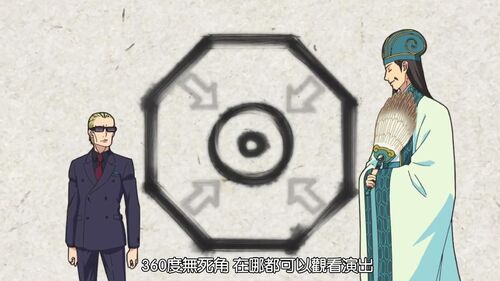 32. 孔明道出本次战术出自《孙子兵法》。这句话的意思是用利益驱使敌人自己踏入陷阱。在下一集里,孔明利用battle成功让KABE太人克服心魔,成为伙伴。