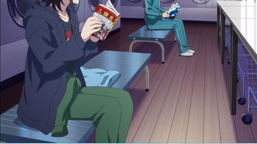 29. 孔明与KABE太人在洗衣店“偶遇”。有趣的是,孔明手捧的是某说唱杂志,KABE太人手捧的是《三国志》漫画。