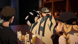 5. 酒吧里cos夏侯惇的酒保。然而实际上夏侯惇是伤了左眼(可能为了反映日本年轻人不看三国了,这一点在后面也有提到)。