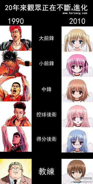 还有一点大家也看到图片了,20年了,动画观众也在不断的进(tui)化,萌化的篮球比赛让樱木,流川一众的老粉闪瞎了眼,这绝对是部具有时代特征的片子,让萌化称霸篮坛,让萌化拯救地球吧!
