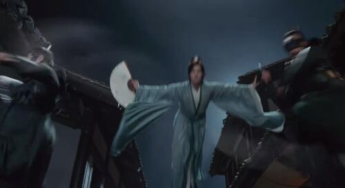 杨洋扇子一甩、pose一摆、马步一扎,舞蹈完美,动作优雅,坏人也全被干掉了。