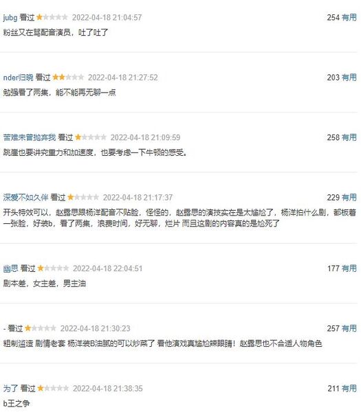 杨洋和赵露思在这剧里都是配音,热搜上纷纷吐槽出戏,实际上配音不算最难接受的,明明是个磕cp的情节,但被他俩演毁了,都这么端着演,怎么能行?