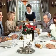 影片中非常精彩的一段,依旧是一段梦境,塞内夏尔先生的一个梦——诸人围坐在上校家的桌子边,等待开始宴饮,他们喝了餐前的苏打水和威士忌,装模作样的探讨新教会的问题,一个仆人用托盘盛着两只烤鸡进屋,仆人不小心把烤鸡掉在了地上,两只鸡在地板上不断的翻滚,仆人把鸡捡起来放进盘子里,众人才发现居然是两只假鸡。