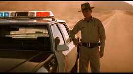 女主发现了一开始的大货车并开到了一家小店,买了厅饮料吃了点药然后打了个电话给当地警官要他们来,出去洗了个脸结果回来老板娘和一员工已经被搭车人干死了。警察赶到前搭车人砍下了自己一根小拇指并扔进油锅然后诬陷女主,混乱中搭车人又干掉了一个警察然后逃出来,女主被当成