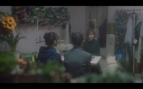 关于影片我最想聊的就是影片的美术和包含在其中的死亡暗示,不仅是因为这个戳中了我,也是因为这个部分成为了我印象深刻的参考。首先是过度的绿植和绿色,刨除实景选择的草地和公园森林,两个女孩子的家,医院,包扎诊所的绿植都是超出装饰范围的多,绿色更凸显在丢狗的裁缝阿姨所有的线轴和最后家里的流水面的滑梯上。这样装饰的氛围上会有一种两个人总是在森林里的神秘感和隐秘的爱恋的包裹感,而另一方面是一种虚假的梦幻感,配合死亡的结果会感受到不真实和虚妄的希望。利用绿植和森林表现死亡和超现实的梦境也不算少见,但却是在这部影片里的使用完全抓住了我,也是我认为美术最最亮眼和突出的地方。