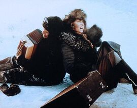 当然还有最后的雪地里,一路狂奔,围墙内的监狱长开始点名,没有准时返回就做逃兵处理,男女主人公坐在雪地里,背靠背(爱情就应该背靠背吧?),拉起手风琴,监狱长侧耳听着,说“他没逃跑”。 镜头从主人公身上迅速拉开,沿着他们走过的路,非常快速地拉到远景,远处,一轮红日!