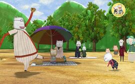 一个阴雨天的早晨,一小朵云挂在树梢。好奇的孩子们发现了那朵奇怪的云,并小心翼翼的把它带给妈妈。妈妈用这朵云烘烤了一些非常美味的面包。孩子们吃下了面包,开始象云一样在空中飘。当孩子们把云做的面包带给他们正在上班的爸爸时,他们的想法才显露出来,从此爸爸就不会错过早餐了。
