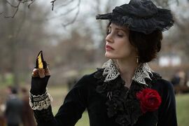 露西尔·夏普由杰西卡·查斯坦饰演。她是在2015年吉尔莫·德尔·托罗执导的哥特悬疑电影《猩红山峰》中的核心人物,尽管最初该角色由米拉·乔沃维奇饰演。作为一位出身英国贵族的年轻寡妇,露西尔被美国富豪埃德加·夏普迎娶为妻,却陷入了丈夫精神疾病带来的深渊。影片通过倒叙手法展现了她从优雅新娘到被囚禁于哥特式庄园的悲剧性转变,揭示了婚姻背后的疯狂与血腥,最终以充满哥特美学的死亡结局完成了她的角色弧光。