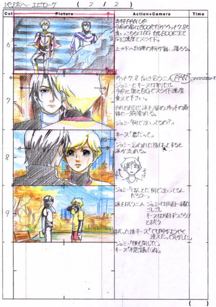 竹宫是少数能够掌控大河剧的少女漫画家,奔向地球结构十分严谨,分阿尔特里西亚篇,基地篇,纳斯卡篇和地球篇。阿尔特里西亚篇以Blue的死为结束和高潮,基地篇以希洛耶的死为高潮,纳斯卡篇以屠杀为高潮,地球篇以地球的毁灭为高潮,起承转合层层推进,这便当发的一个比一个轰烈。本当在第四话便挂掉的Blue被山崎理一句:“啊,他就挂了?”而被判了死缓,成了睡美人。这第一章没了高潮,然后进入基斯为主的基地篇,再回来缪这头时已经过了八年。乔米已经成长为缪的领袖,这八年怎么成长漫画是有交代的:乔米试图调解缪与长老们的纷争时被长老们的思念波攻击陷入沉睡,菲西斯试图唤醒沉睡中的乔米,结果发现乔米的潜意识被Soldier Blue所控制,换句话说,乔米这八年一直Soldier Blue的傀儡。这一段剧情被砍掉了。