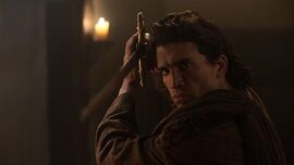 因为桑乔的兵力不足,所以他们选择了发挥骑兵的优势。一般来说,在贵族武士当中,步兵的人数是骑士的4~5倍,骑士是比较精贵的。Graus一代的草原远离湿地,非常适合骑兵作战。最后也导致了桑乔的胜利和战神的涌现。正如片中所示,骑士是整个战斗的主导。骑士挂剑一般在身体左侧。左手持圆形盾牌。在两军对垒之时,统帅要勇猛的冲在最前面。而因此在第一时间落马的可能性也大大增加。