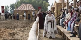 第1集的武士比赛就不用说了,这简直很少在电影中能看到。中世纪的比赛可不是玩笑,那时候还要赔很多很多的钱,所以比赛是一件最大的事情,远远超过现在的奥林匹克。