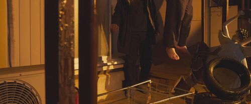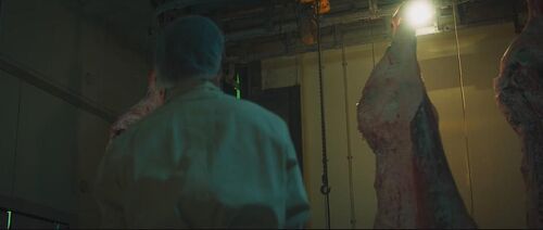 在宰杀厂工作的正夫有时会停下来看着这些挂着的还未拆解的生肉,有天看到了寄宿在他家的演员朋友自杀了。这两段都拍得很平静,甚至可以说有点大师级气质的感觉。有人问我什么叫有追求的电影,其实看过一眼便知, 想法与尝试是拦不住的。